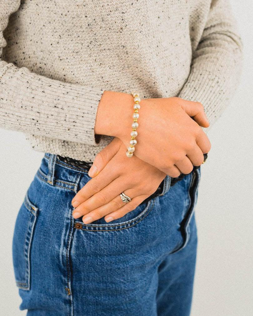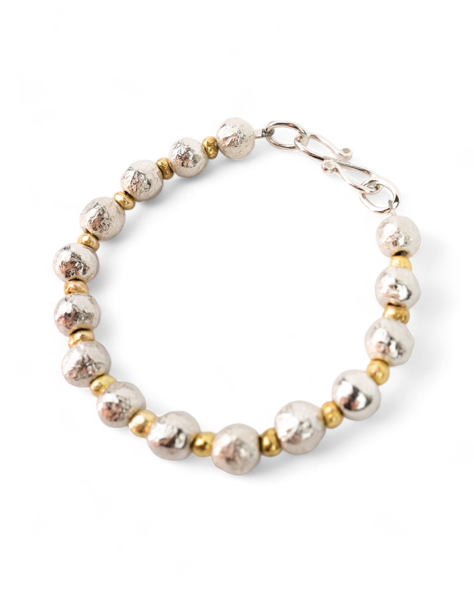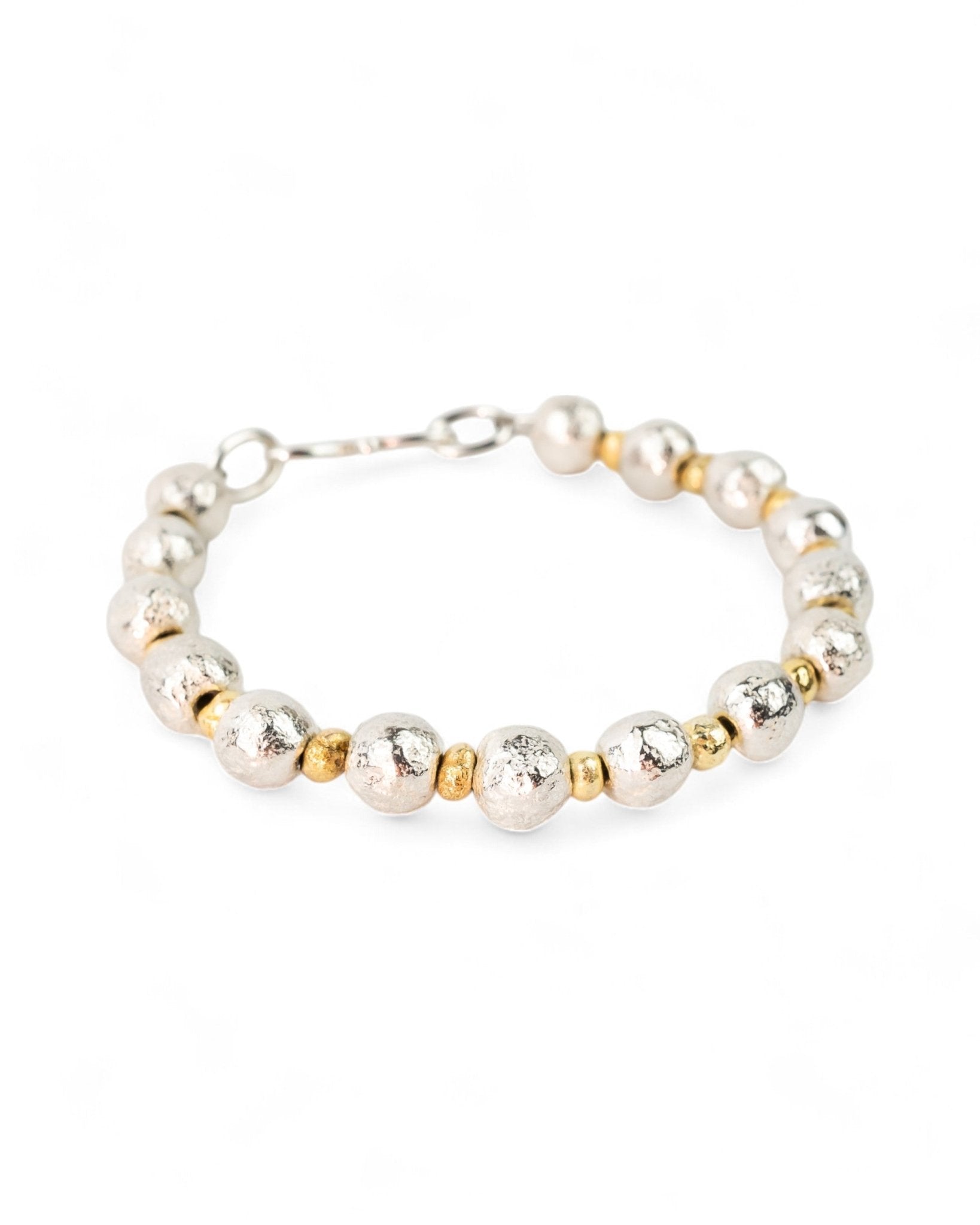 The Handmade Nugget Silver and Gold Bracelet (Large) combines the elegance of 9ct yellow gold beads with the charm of 8mm silver free-cast nugget beads.