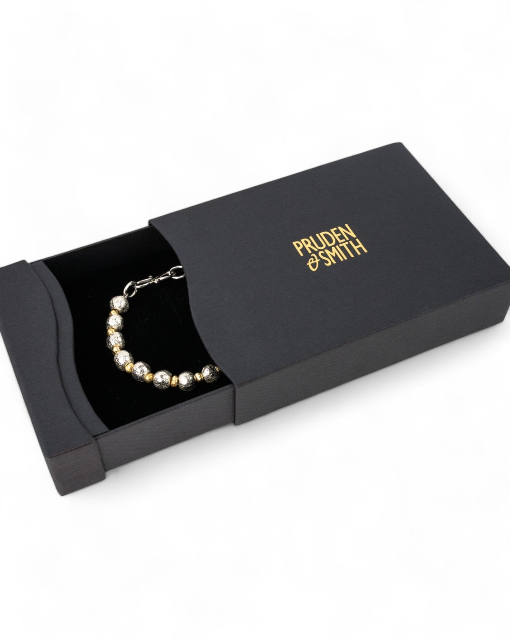 • Handmade Beads: Each bead in the bracelet is individually handmade in solid silver, providing a lovely weight and ensuring a high-quality finish. The beads are handmade to have an uneven, reticulated surface, adding visual interest and enhancing their organic look.