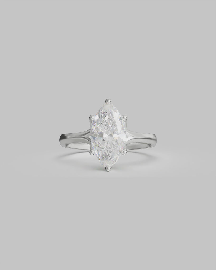 • Marquise Diamond: The central feature of this ring is a 10x5mm marquise diamond, suspended between six decorative claws. Choose from natural or lab-grown diamonds from 1-3cts for the stunning ring.
